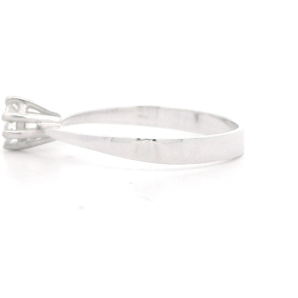 Elegante anillo solitario de oro blanco de 2,3 gramos 18K, talla 15, con un diamante de 0,23 ct. de claridad SI-G. Una joya sofisticada que destaca por su brillo y diseño clásico, perfecta para cualquier ocasión especial.