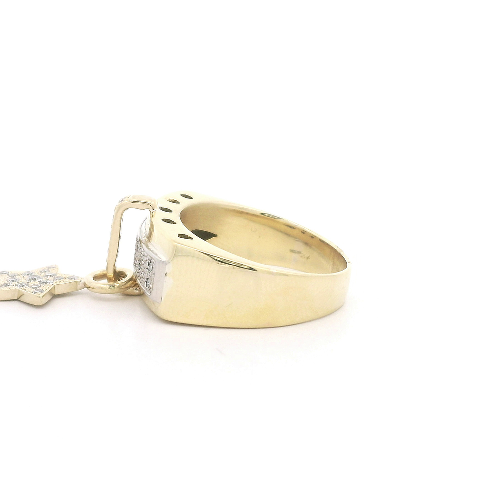 El frente del anillo incorpora una franja texturizada en oro blanco con destellos, mientras que el colgante estrella aporta movimiento y un toque moderno. Además, está engastado con 30 diamantes naturales y 3 diamantes sintéticos, logrando un brillo visible desde distintos ángulos y una estética premium perfecta para ocasiones especiales o para elevar el look diario.