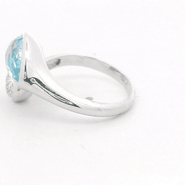 Anillo De Oro 14K Cintillo Chaton Rodinado 2 piedras Azules 5 Diama...