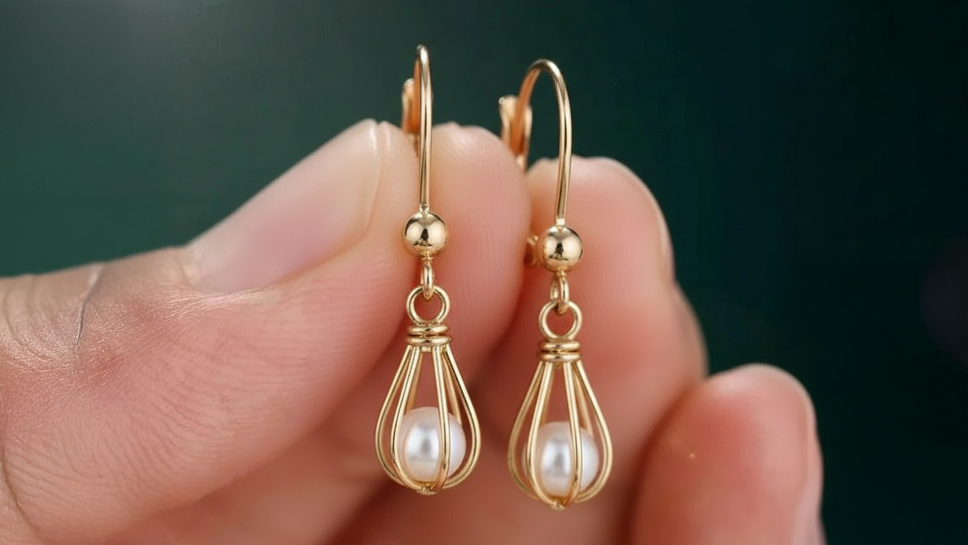 Una de las técnicas más fuertes este año es atrapar perlas barrocas gigantes dentro de estructuras o "jaulas" de oro texturizado.